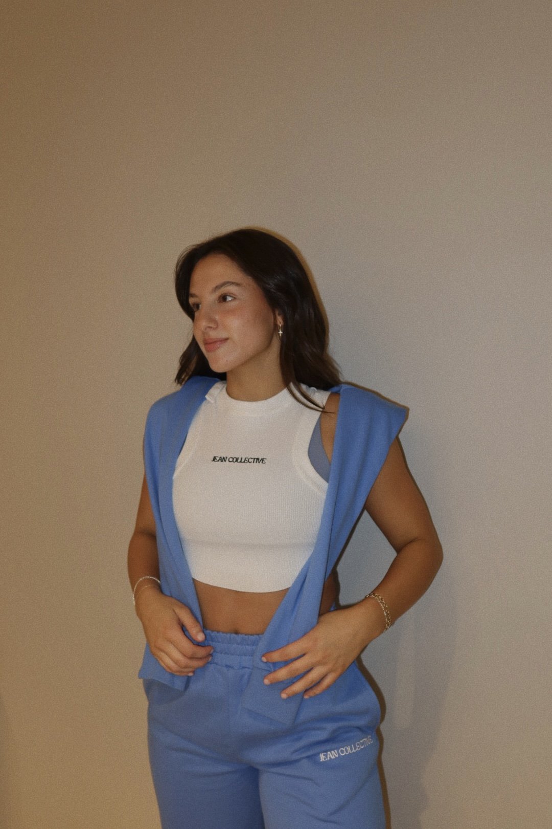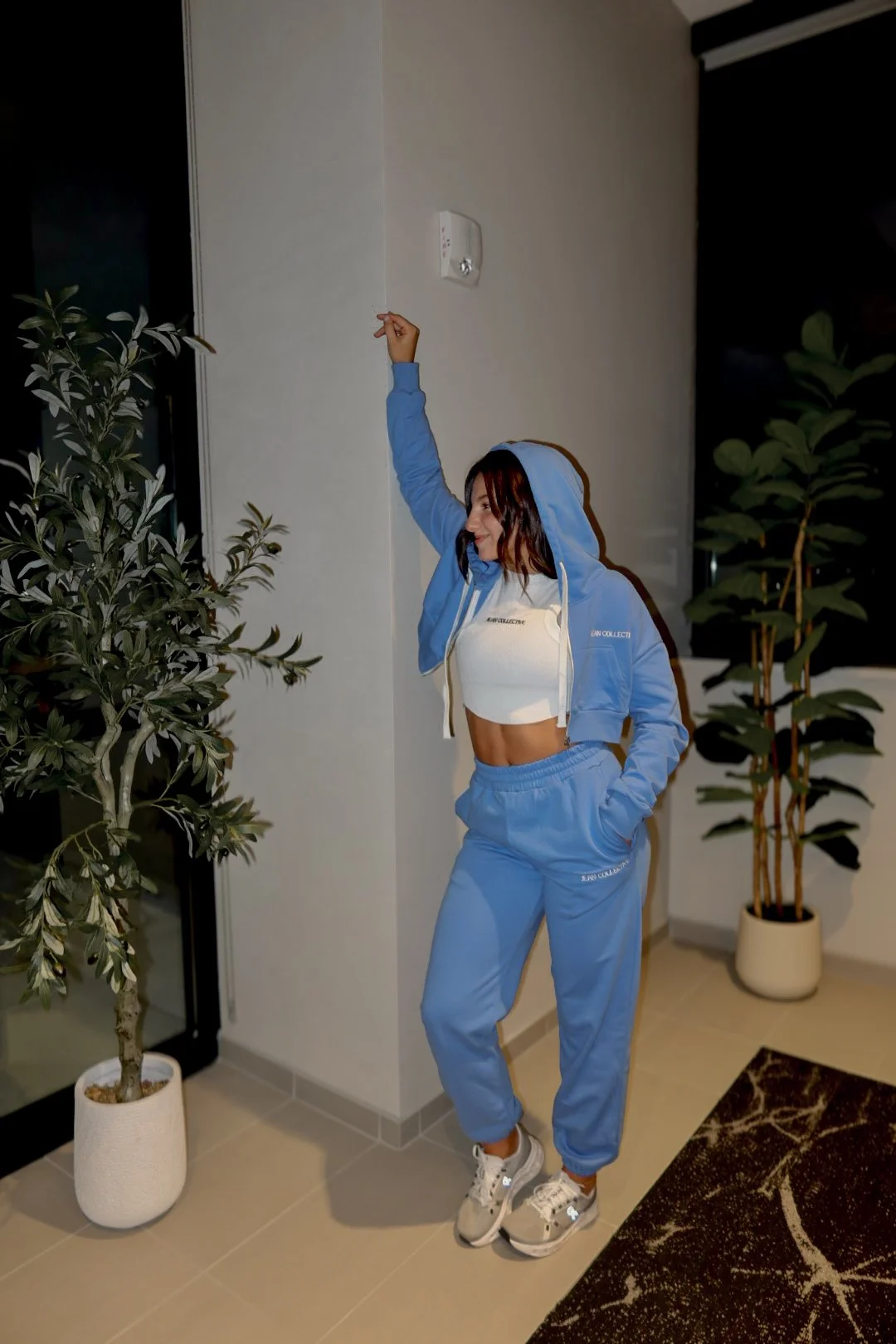 Introducing our new Cropped Zip by Jean Collective in SKY BLU — crafted from 100% Terry Cloth Cotton for a soft, breathable feel. Pairs Perfectly with our SKY JOGGER + RIBBED TANK