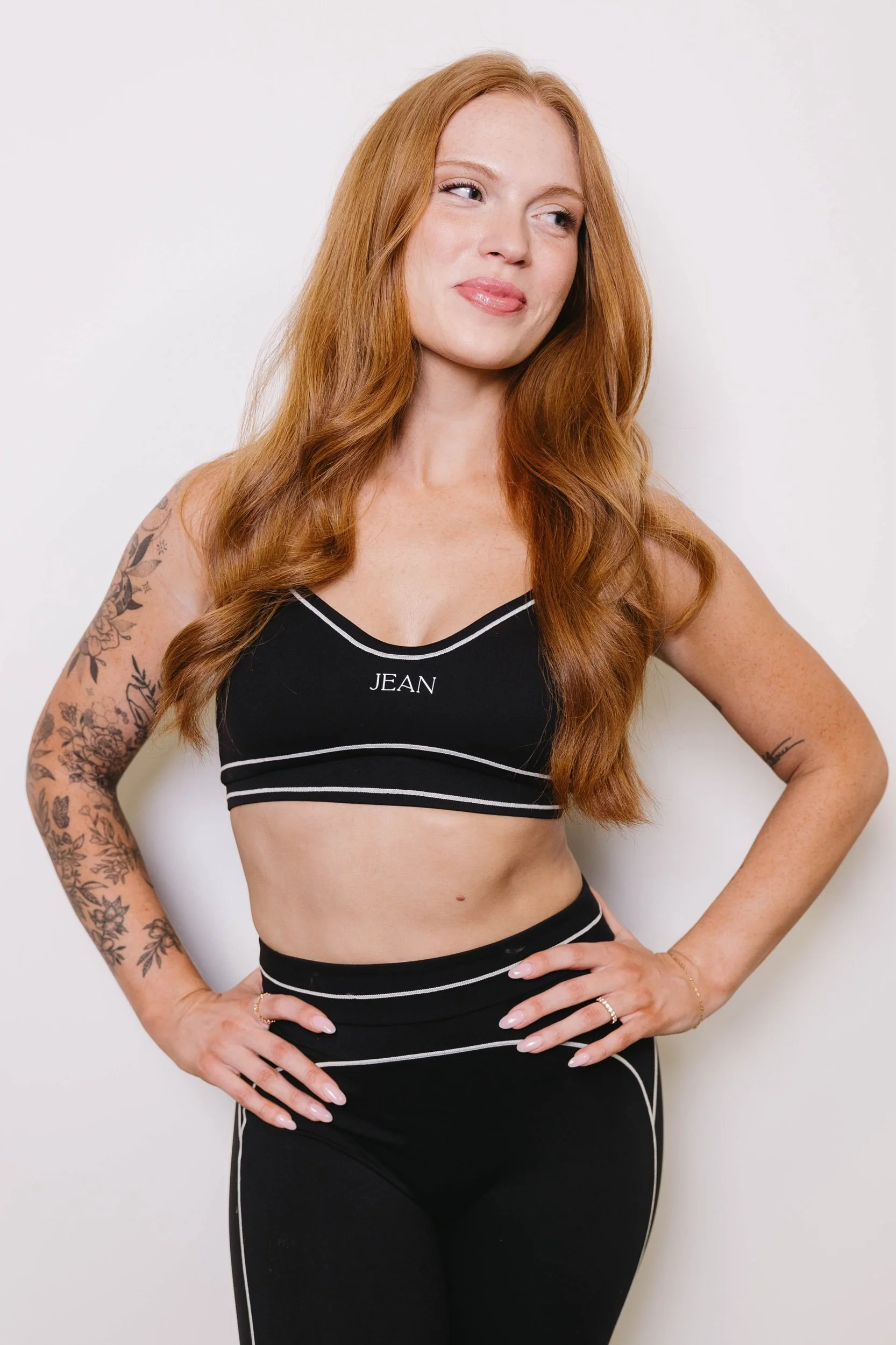 So soft, it’s like wearing nothing… available in 2 colors—CHERRY + BLACK. Pairs so well with FINEline bra + short. Features stitching detail and contouring lines!